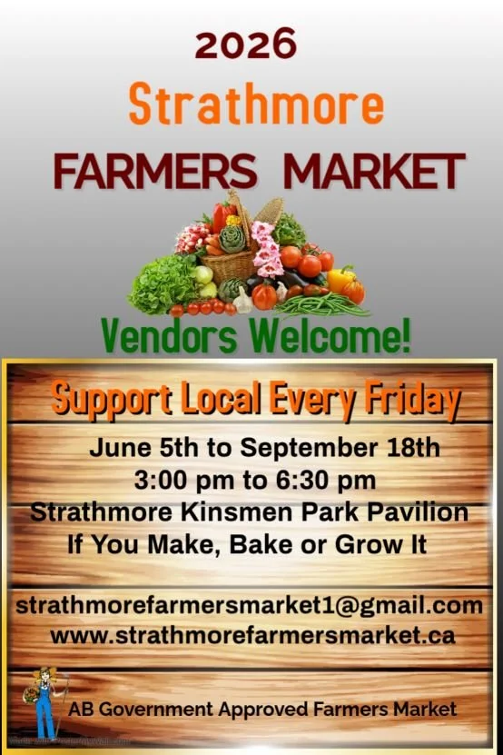 Bring your friends and family, support local businesses, and enjoy a fun-filled afternoon at the Strathmore Farmers’ Market!